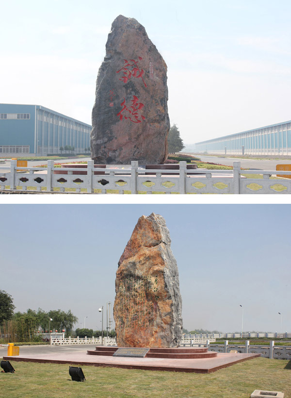 揚(yáng)州誠(chéng)德鋼管有限公司西大門(mén)落成,正面石刻“誠(chéng)德”二字由范曾大師題寫(xiě),背書(shū)董事長(zhǎng)之“長(zhǎng)江令”由地方著名書(shū)法家李茂年先生執(zhí)筆。